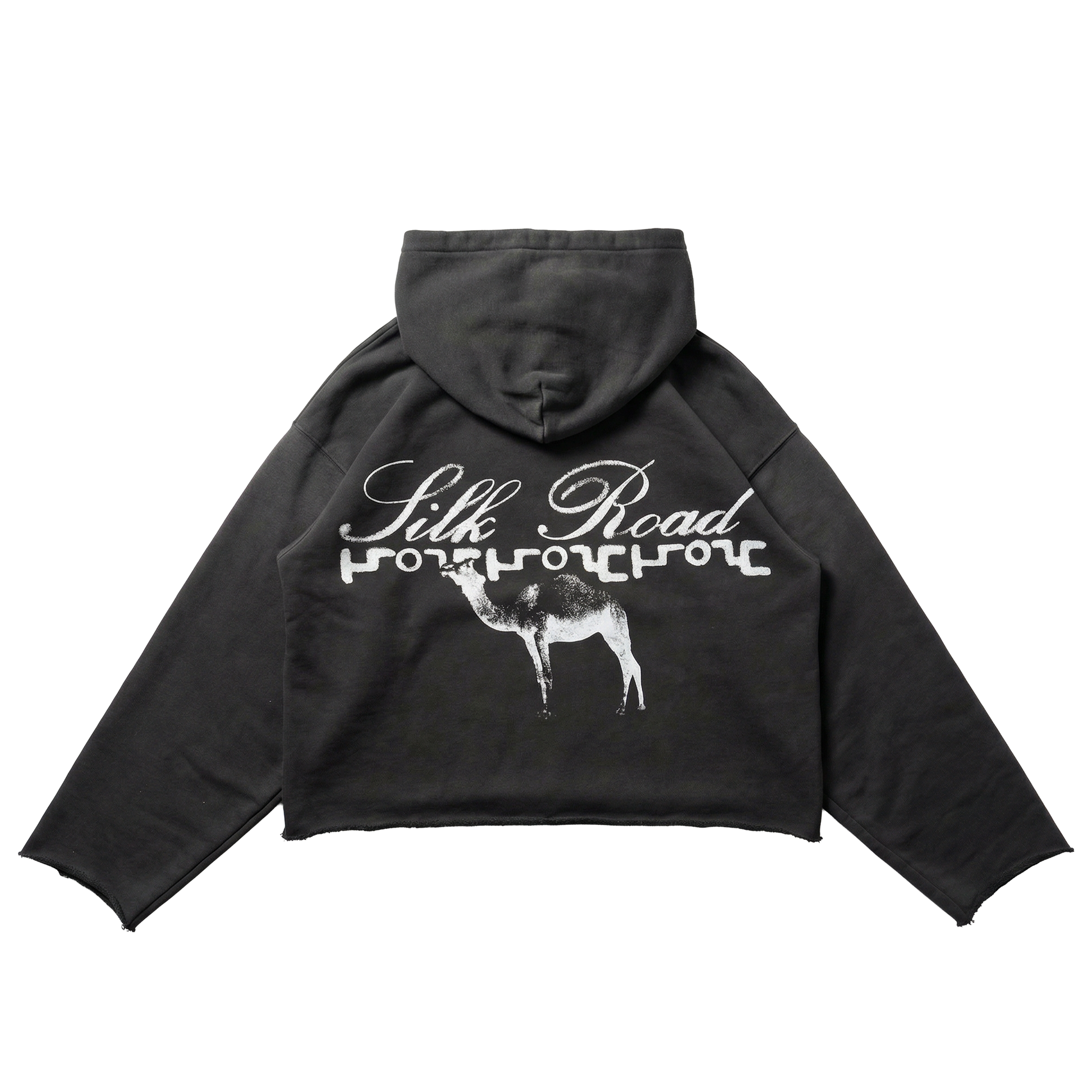 Heavyweight distressed boxy hoodie. Screen printed logo on the back. Embroidered logo on the front. Sun faded 500 gsm french terry 100% cotton fabric.